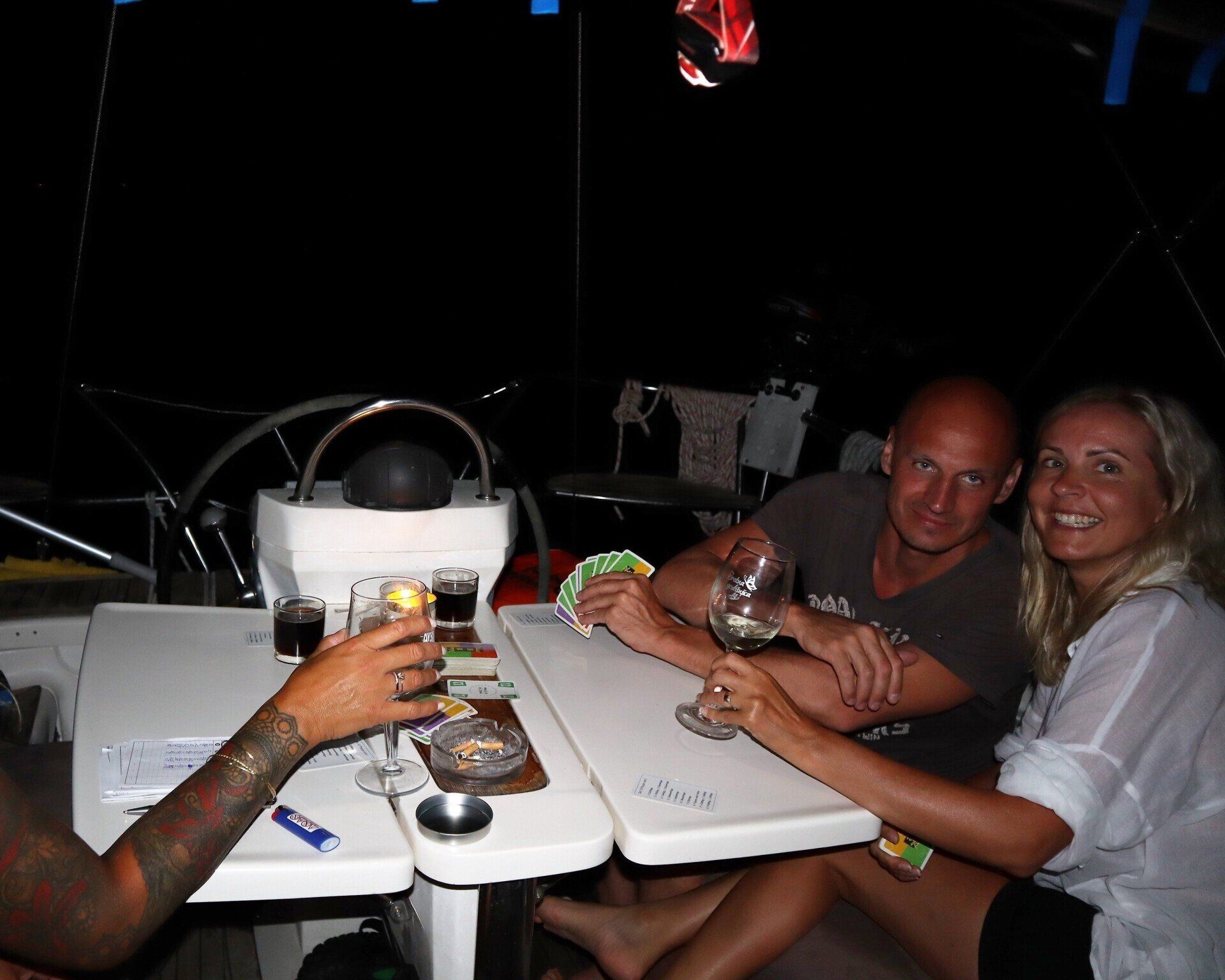 Da alle Crewmitglieder lieber in einsamen Buchten in völliger Ruhe und der Schönheit der Natur verweilen mochten, verließen wir am Morgen den Hafen und machten uns auf in die nächste Badebucht. Ob Springen von hohen Felsen, Spazieren auf Waldwegen im Hinterland oder Schnorcheln am Strand, jeder macht das, wonach ihm gerade ist. Am Abend wurde mit ein paar Gläsern Wein angestoßen, Gesellschaftsspiele gespielt und der Sonnenuntergang bis tief in die Nacht beobachtet.